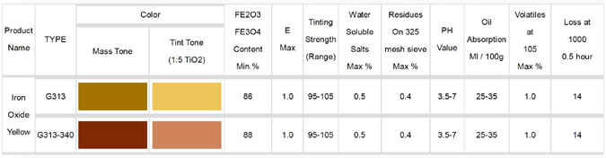 Chemical formula: Fe2O3H2O, It is one kind of oxides with stable chemical properties. Iron oxide yellow is widely used in painting, scagliola and concrete due to its bright & pure color, good weather resistance and high opacity, also can be used as colorants for ink, rubber, paper and so on.