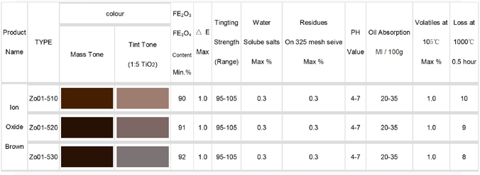 Iron Oxide Brown owns both properties of Iron Oxide Red and Yellow,but it has more fargoing color and better applicability.Compared with Iron Oxide Red and Yellow, it is used more widely and meet with the requirement of customers.